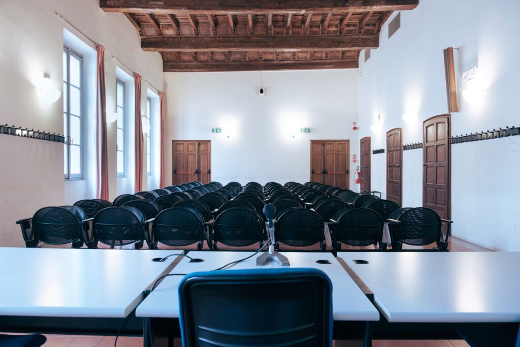 Aula 2 – Giuseppe Lazzati 1 di 3 Ubicazione e accessibilità Primo piano. Accessibile con ascensore, ma presenti barriere architettoniche Capienza e dimensioni 70 posti. platea con sedie a ribaltina Attrezzature Proiettore Epson EB-700 da 4000 al, lavagna metallica, 1 microfono da banco, Wi-Fi per i relatori Scarica la scheda tecnica Contattaci